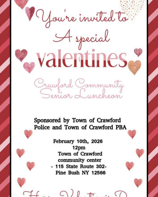 Valentine’s Senior Luncheon💌 Calling all Senior Citizens! 💌 You’re invited to a special Valentine’s Senior Luncheon hosted by the Town of Crawford Police Department and the Town of Crawf...