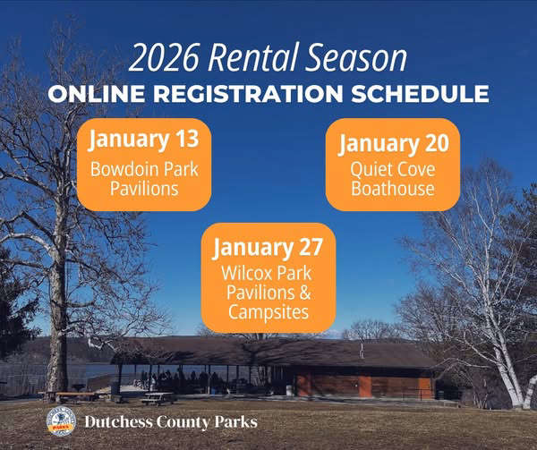 Dutchess County Parks’ Rental Reservation SystemDutchess County Parks has announced 2026 reservations for pavilions, campsites, kayak slips, boathouse, and other facility rentals will open next month. Due to ...