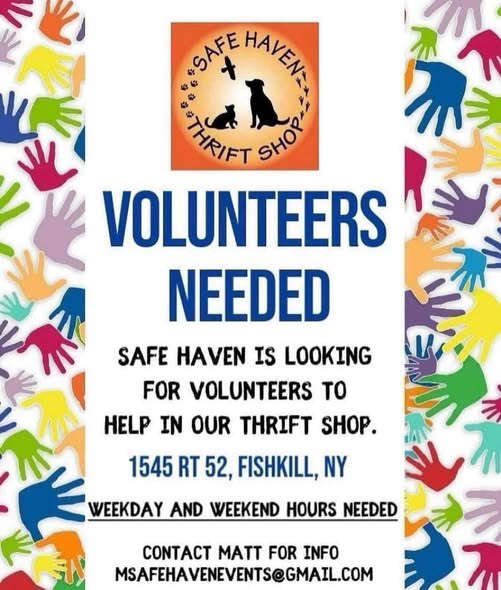 Safe Haven Thrift Shop Volunteers NeededThe shop offers a variety of items at reasonable prices, benefiting local animal shelters and providing pet food to those in need. You can contact them at 845-3...