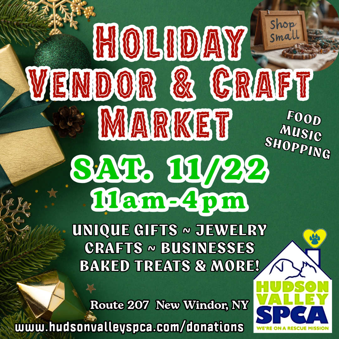 HVSPCA Big Holiday Vendor and Craft Market EventJoin our friends at the Hudson Valley SPCA for their Big Holiday Vendor and Craft Market Event at their location in New Windsor. Perfect opportunity to get a j...