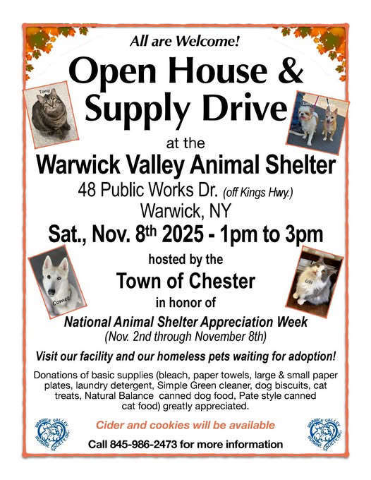 Open House and Supply Drive at Warwick Humane SocietyNovember 2nd 2025